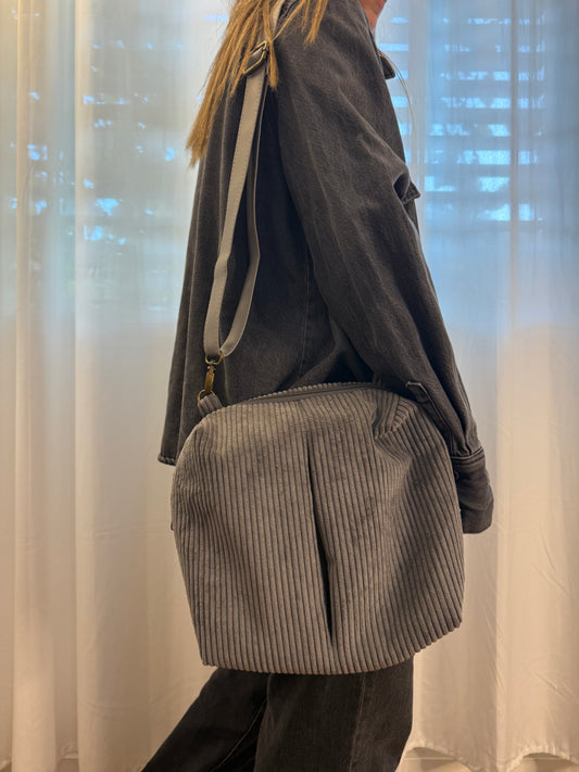 תיק צד קורדרוי אפור
