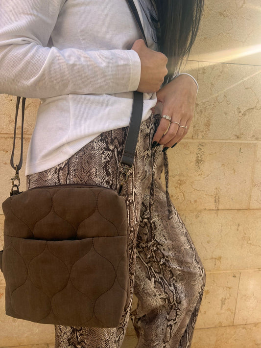 תיק מיני קווילט חום