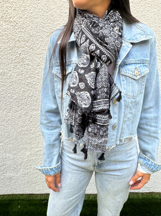 צעיף בנדנה שמנת שחור